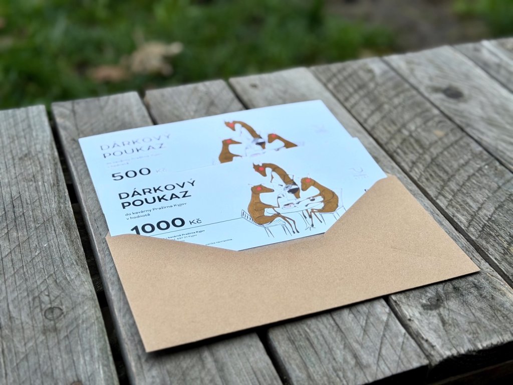 Fyzický (Tištěný): Pro slavnostnější příležitosti. Poukaz tiskneme na kvalitní tvrdý papír s elegantní grafikou. Vypadá jako skutečný dárek, který stačí převázat stužkou. Pošleme vám jej na adresu, nebo si jej můžete vyzvednout přímo u nás v kavárně.