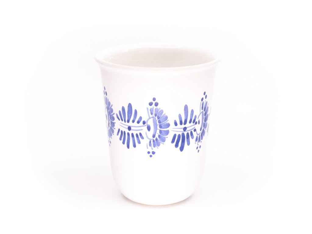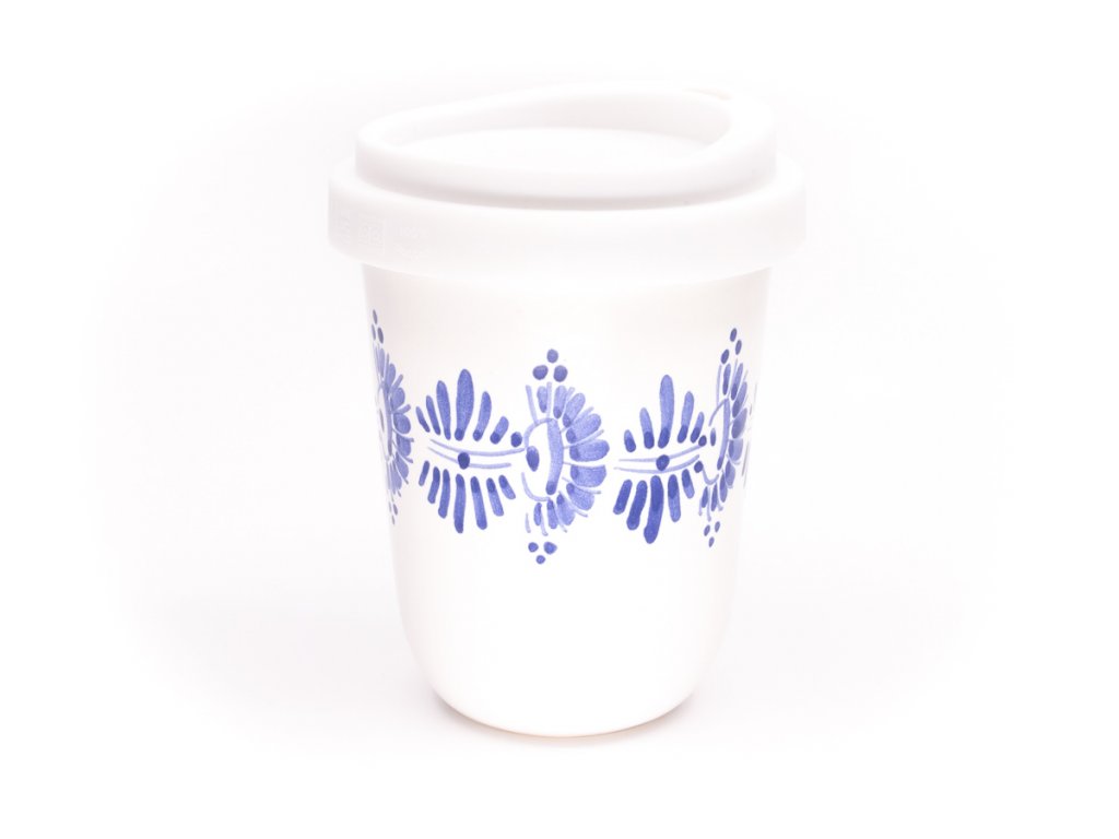 Hrnek na kávu s sebou – 250 ml | bílý | modrá kopretina | Moravská keramika